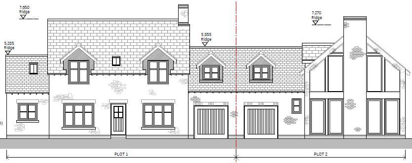 The application and ideas brought forward by Prism Ag's Director, and discussed with the client were to create a small development on the infill plot, but which had two totally different property types on either side and of differing roof heights, to the left was traditional coarsed stone barn conversions with no less than three different ridge heights and to the right was a row of ex council red brick semi detached and terrace houses. We followed through with the same original strategy we created for the client, our sketch views submitted with the application gave the second appeal inspector a relatively good concept idea of how the proposal would look, even though Scale and Appearance were matters that we reserved.